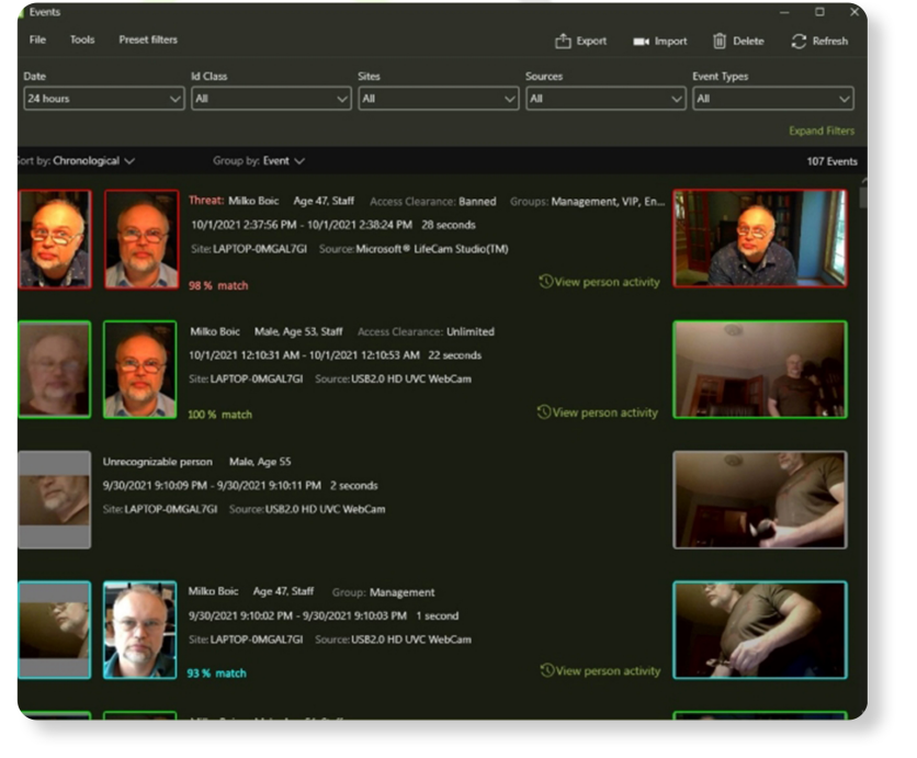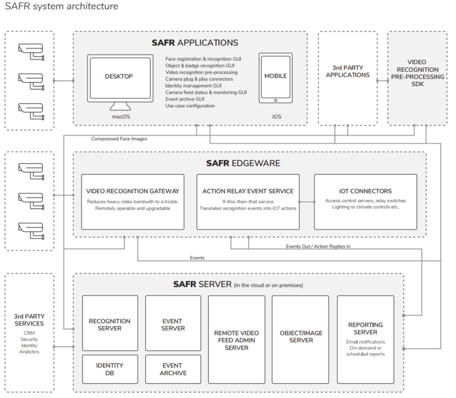 SAFR قادر است چهره افراد را در ویدئوهای زنده و در کسری از ثانیه شناسایی کند. این قابلیت برای محیط‌های امنیتی و پرتردد بسیار حیاتی است و امکان واکنش فوری به رویدادها را فراهم می‌کند.