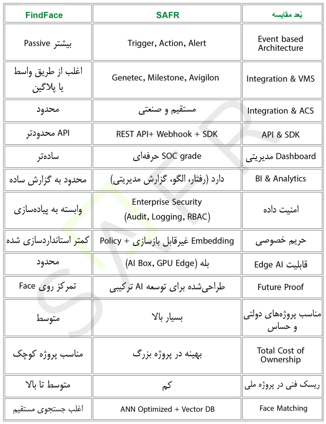 در واقع ، SAFR فرا تر از یک ابزار امنیتی است؛ یک راهکار استراتژیک برای سازمان های هوشمند که می خواهند امنیت، کارایی و هوشمندی را در یک سیستم واحد تجربه کنند.