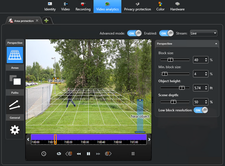 پس از تعریف این نواحی، سیستم بهصورت مداوم تصویر دوربینها را تحلیل میکند و هرگونه ورود، عبور یا توقف افراد در این محدودهها را با قوانین از پیش تعیینشده تطبیق میدهد. اگر شخصی بدون مجوز وارد محدوده شود، Area Protection بلافاصله آن را بهعنوان یک رویداد امنیتی شناسایی میکند.