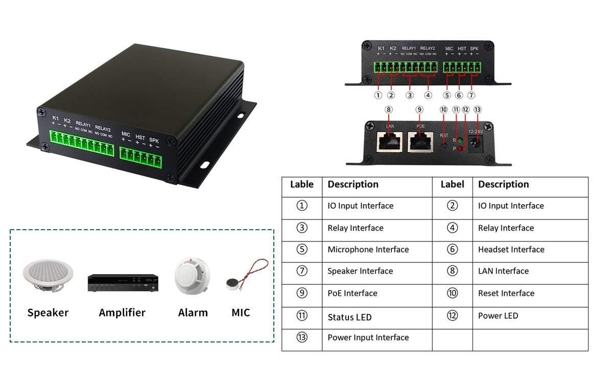 | Support for SIP protocol for intergration with VoIP systems,intergrated with SIP/PBX 2 SIP Accounts, SIP Direct IP Call, RTP Multicast Codec: OPUS, MP3, G.722, PCMU, PCMA | VoIP |