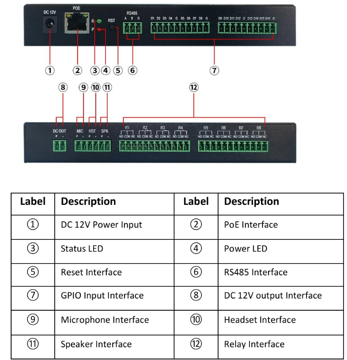 | 1x MIC input, 1 x Headset output, 1 x Speaker output, 8 x Relay, 16 x GPIO | Interface |