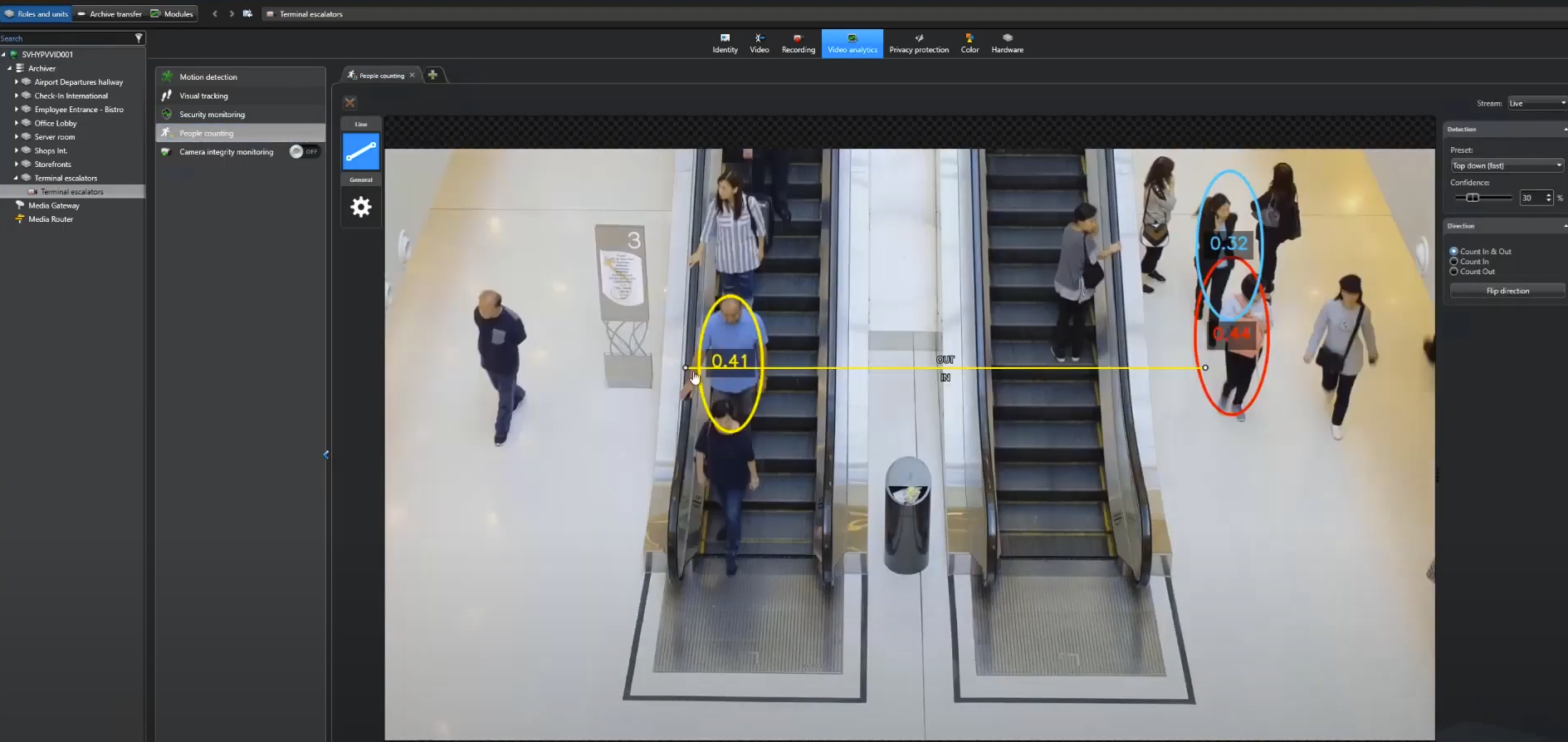تصور کنید شما مدیر یک مرکز خرید بزرگ با چند طبقه، دهها فروشگاه و راهرو هستید و چندین ورودی و خروجی دارید. دوربینها در نقاط کلیدی مانند لابی، راهروها، آسانسورها و جلوی فروشگاهها نصب شدهاند تا جریان مشتریان به صورت کامل زیر نظر گرفته شود. با فعال کردن ماژول People Counter، سیستم به طور هوشمند تعداد افرادی که وارد و خارج میشوند را ثبت میکند و در هر لحظه به شما نشان میدهد چند نفر در هر بخش، طبقه یا راهرو حضور دارند. این اطلاعات به شما کمک میکند شلوغترین بخشها و ساعات پیک مراجعه مشتریان را شناسایی کنید و بر اساس آن تصمیم بگیرید که چه زمانی پرسنل بیشتری نیاز است، چه درهایی باید باز شوند و مسیرهای حرکت مشتریان چگونه مدیریت شوند تا جریان رفت و آمد روانتر و امنتر باشد.